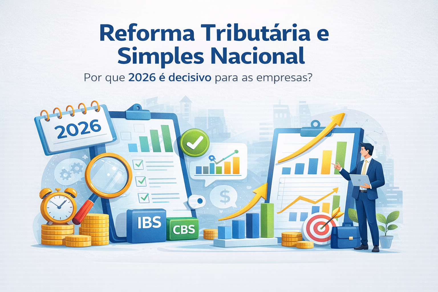 A Reforma Tributária deixou de ser um debate futuro e passou a integrar a realidade das empresas brasileiras. Desde 1º de janeiro , iniciou-se oficialmente o período de transição do sistema tributário atual para o novo modelo baseado no IBS (Imposto sobre Bens e Serviços) e na CBS (Contribuição sobre Bens e Serviços) . Para as empresas optantes pelo Simples Nacional , a principal mensagem neste momento é clara: não há impacto financeiro imediato , mas o cenário fiscal já começou a mudar . Ignorar 2026 pode significar tomar decisões no escuro em 2027. A Reforma Tributária já está em vigor? Sim! A partir de 01/01, começou o período de transição previsto na legislação da Reforma Tributária. Esse período foi desenhado para permitir que empresas, sistemas e o próprio Fisco se adaptem gradualmente ao novo modelo de tributação sobre o consumo. Isso não significa aumento imediato de carga tributária para todos os regimes — especialmente para o Simples Nacional —, mas marca o início de uma mudança estrutural no ambiente fiscal brasileiro . 2026: o que é, de fato, o “ano de teste” da Reforma Tributária O ano de 2026 foi definido em lei como um período de testes operacionais do novo sistema tributário. Na prática, isso significa que: O IBS e a CBS passam a existir juridicamente São estabelecidas alíquotas simbólicas de teste O foco não é arrecadação, mas sim: Validação de sistemas Adequação de documentos fiscais Testes de cruzamento de dados Ajustes tecnológicos e operacionais Trata-se de um ano de validação técnica , e não de aumento imediato da carga tributária. Empresas do Simples Nacional vão pagar IBS e CBS em 2026? Não! A Lei Complementar nº 214/2025 é expressa ao determinar que, em relação aos fatos geradores ocorridos ao longo de 2026: As empresas optantes pelo Simples Nacional não recolhem IBS nem CBS As chamadas alíquotas de teste não se aplicam ao Simples O recolhimento de tributos continua sendo feito exclusivamente por meio do DAS Desde que, naturalmente, as obrigações acessórias sejam corretamente cumpridas. Ou seja: não há novo imposto a ser pago em 2026 pelo Simples Nacional . Atenção: dispensa de pagamento não significa dispensa de adaptação Este é, provavelmente, o ponto mais ignorado pelas empresas. Apesar da dispensa do recolhimento do IBS e da CBS em 2026, as Notas Técnicas da Receita Federal deixam claro que o ambiente fiscal passa por mudanças relevantes já nesse período. As empresas do Simples Nacional devem: Atualizar os layouts de XML das notas fiscais Garantir que seus sistemas emissores estejam compatíveis com o novo modelo Adequar processos internos à nova lógica tributária Na prática, o imposto ainda não é pago , mas o sistema que o sustenta já começa a funcionar . Ignorar essa fase pode gerar problemas operacionais, fiscais e estratégicos no futuro próximo. Por que o Simples Nacional não pode ignorar 2026? Porque 2027 muda completamente o cenário. A partir desse momento: IBS e CBS passam a operar de forma efetiva A lógica do imposto “por fora” impacta diretamente a formação de preços O crédito tributário se torna um fator competitivo relevante, especialmente em operações B2B Nesse contexto, muitas empresas do Simples precisarão avaliar estrategicamente se: Permanecem no Simples “tradicional” Ou optam pelo recolhimento do IBS e da CBS fora do regime, buscando maior competitividade Quem não se organiza em 2026 será obrigado a decidir às pressas em 2027 — geralmente, pagando mais caro por isso. O que as empresas do Simples já podem (e devem) fazer agora Mesmo sem novo imposto a pagar em 2026, este é o momento ideal para preparação estratégica. Algumas ações são essenciais: Atualizar sistemas e layouts fiscais Entender o funcionamento do IBS e da CBS Simular impactos na formação de preços Avaliar diferenças entre operações B2B e B2C Organizar cadastros de produtos e serviços Preparar a contabilidade para o novo modelo Tomar decisões baseadas em dados, não em improviso Planejamento tributário, neste cenário, deixa de ser apenas economia de imposto e passa a ser estratégia de sobrevivência e competitividade . Conclusão: 2026 não é o ano de pagar imposto novo — é o ano de se preparar O maior erro das empresas do Simples Nacional neste momento é acreditar que “nada muda” em 2026. A verdade é que o ambiente fiscal já está mudando , e quem usa este ano apenas como um período de espera corre o risco de perder margem, competitividade e previsibilidade nos anos seguintes. 2026 é o ano de preparar o negócio para a nova realidade tributária brasileira. Quem se antecipa, decide melhor. Quem ignora, decide no escuro. Planejamento agora não é custo. É proteção de margem, preço e competitividade . Você já sabe como a Reforma impacta sua empresa na prática? Chame o nosso time no WhatsApp/Telefone para entender seu cenário antes que vire obrigação: (21) 3432-5300